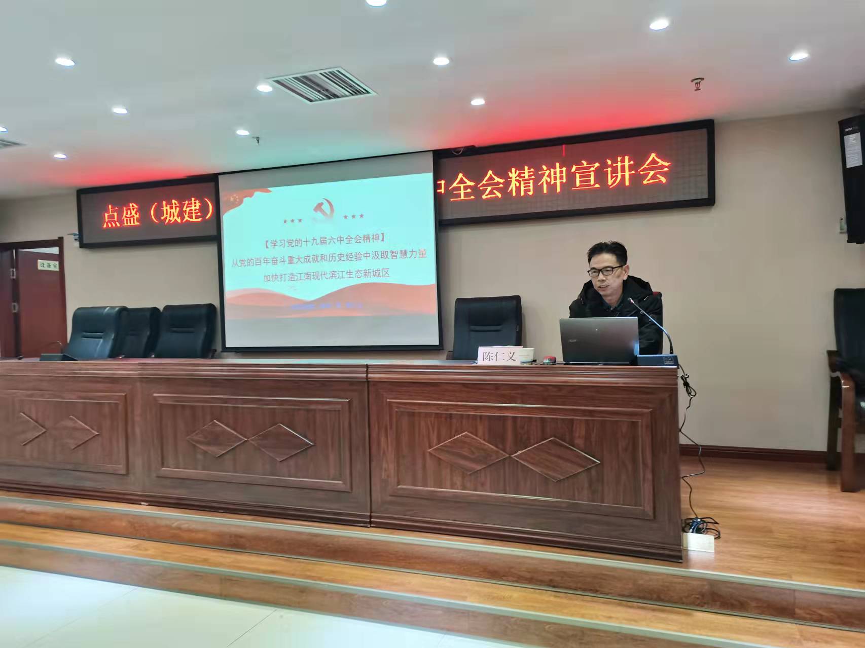 陳仁義以從黨的百年奮斗重大成就和歷史經(jīng)驗中汲取智慧力量,加快打造江南現(xiàn)代濱江生態(tài)新城區(qū)”為題,從我們黨為什么要做關(guān)于黨的百年奮斗歷程的決議、中國共產(chǎn)黨百年奮斗歷程的四個時期、中國共產(chǎn)黨百年奮斗的歷史經(jīng)驗總結(jié)和我們應(yīng)該怎么做四個方面作詳細(xì)闡述。號召全體干職工要以十九屆六中精神為指引,解放思想、干在實處、爭當(dāng)表率,切實履行國有企業(yè)的政治責(zé)任、社會責(zé)任和經(jīng)濟(jì)責(zé)任。