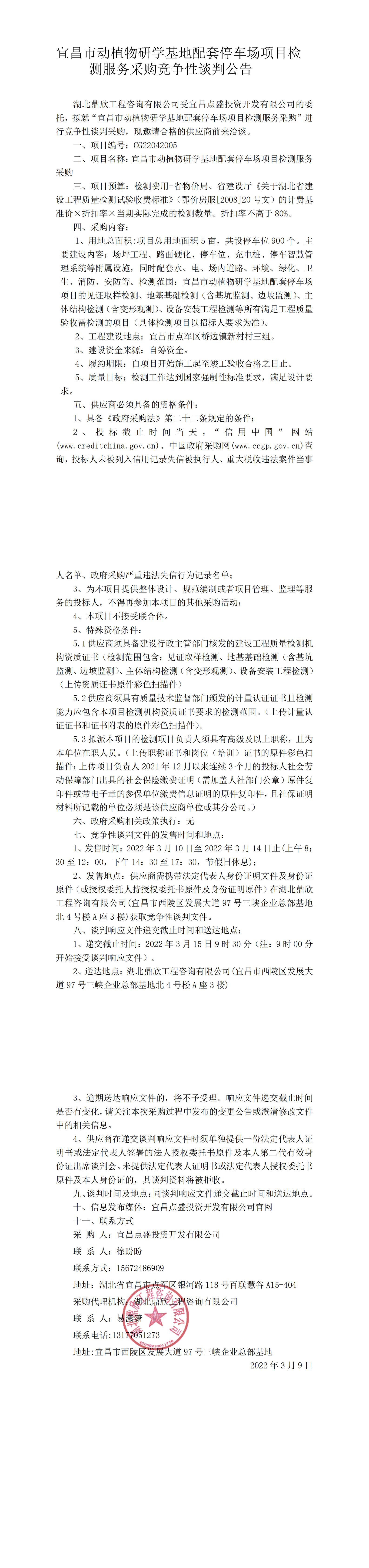 宜昌市動植物研學(xué)基地配套停車場項目檢測服務(wù)采購競爭性談判公告