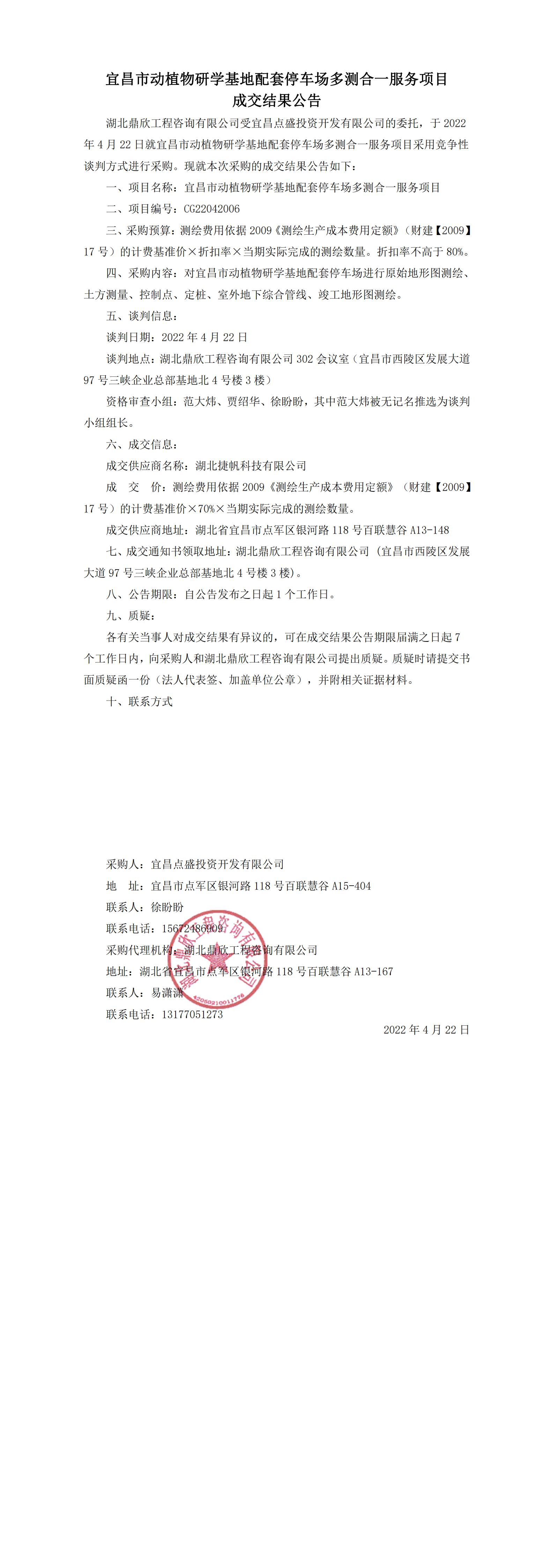 宜昌市動(dòng)植物研學(xué)基地配套停車場多測合一服務(wù)項(xiàng)目成交結(jié)果公告