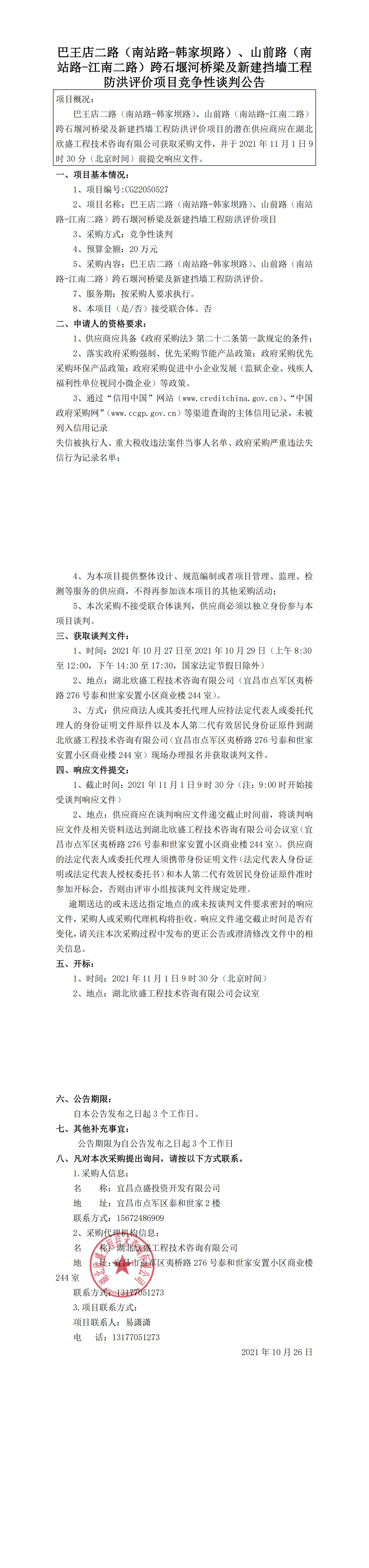 巴王店二路(南站路-韓家壩路)、山前路(南站路-江南二路)跨石堰河橋梁及新建擋墻工程防洪評價(jià)項(xiàng)目談判公告