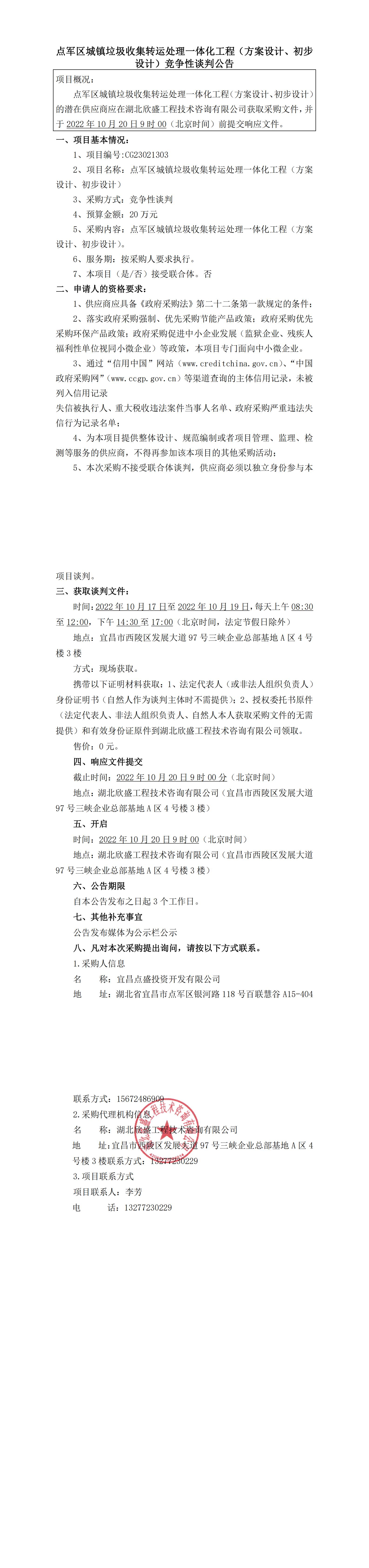 點軍區(qū)城鎮(zhèn)垃圾收集轉運處理一體化工程(方案設計、初步設計)競爭性談判公告