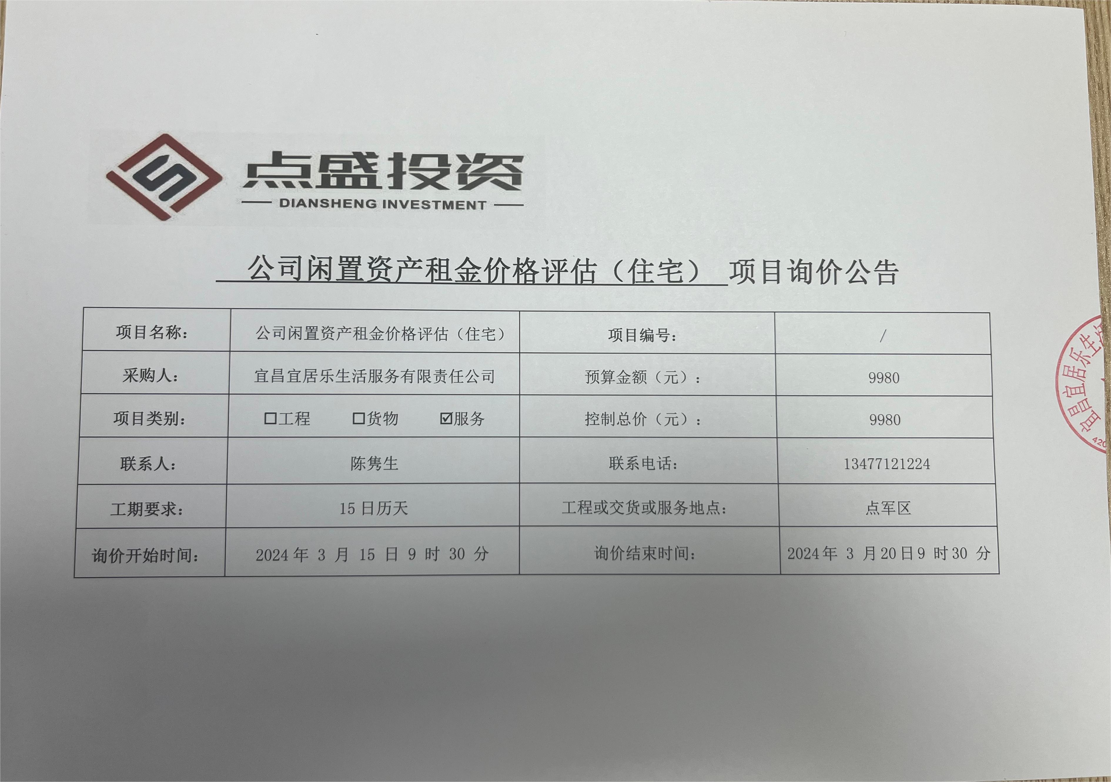 公司閑置資產(chǎn)租金價(jià)格評(píng)估(住宅)?項(xiàng)目詢價(jià)公告