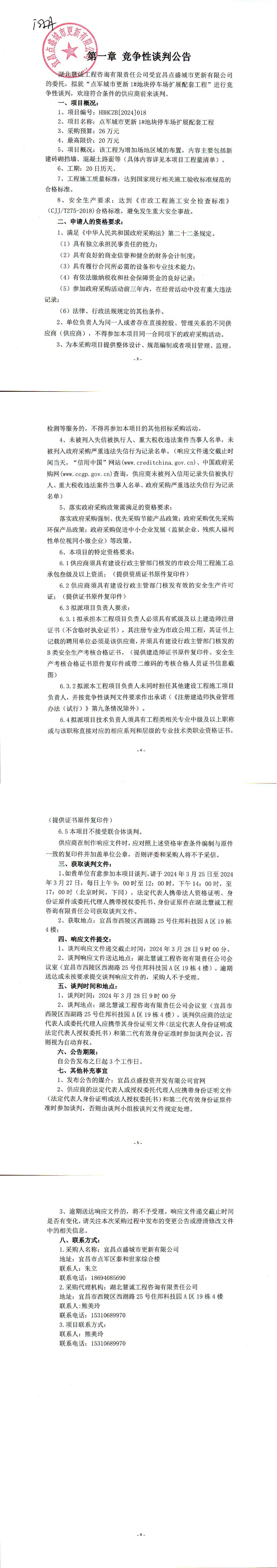 點軍城市更新1#地塊停車場擴展配套工程競爭性談判公告