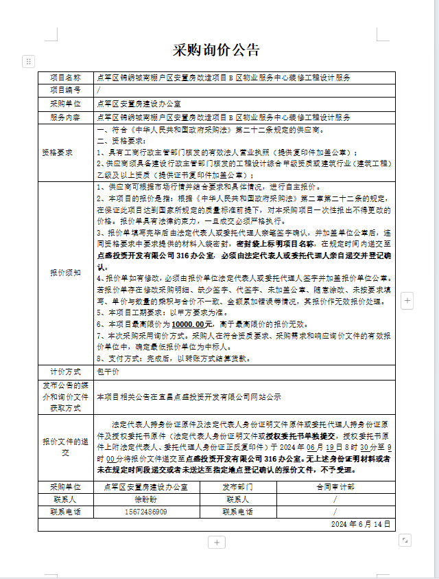 點(diǎn)軍區(qū)錦繡城南棚戶(hù)區(qū)安置房改造項(xiàng)目B區(qū)物業(yè)服務(wù)中心裝修工程設(shè)計(jì)服務(wù)詢(xún)價(jià)公告