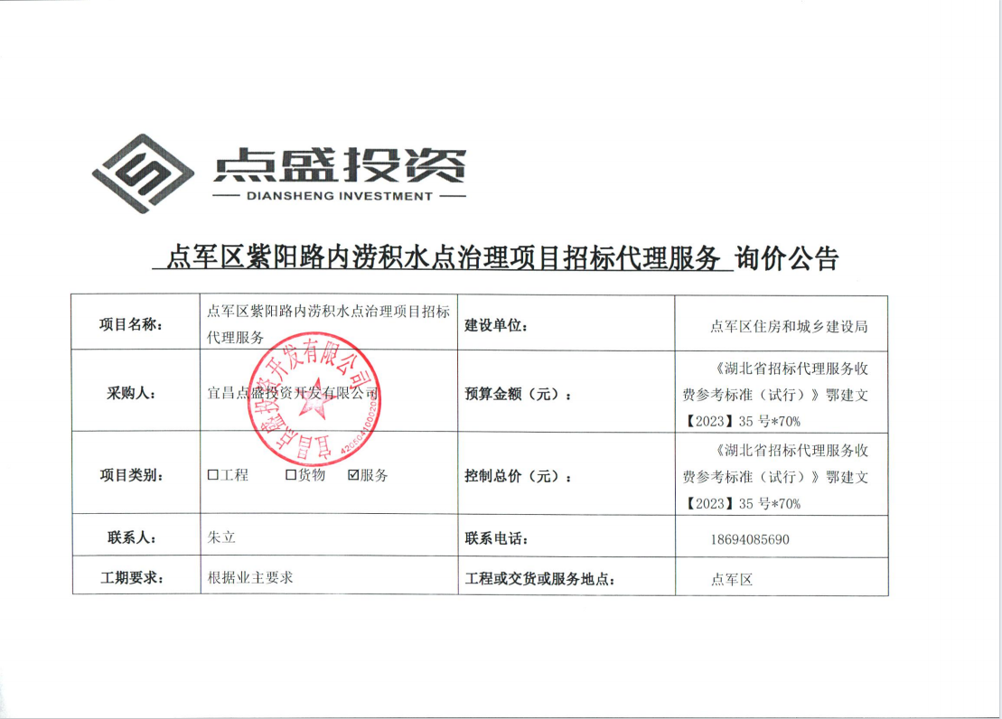 點軍區(qū)紫陽路內澇積水點治理項目招標代理服務詢價公告