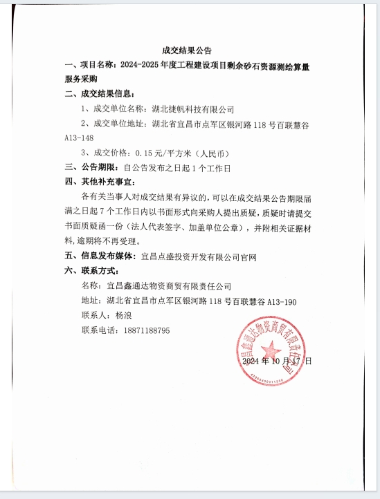 2024-2025年度工程建設項目剩余砂石資源測繪算量服務采購成交公告