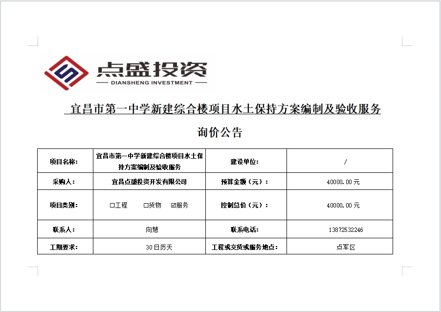 宜昌市第一中學(xué)新建綜合樓項目水土保持方案編制及驗收服務(wù)詢價公告