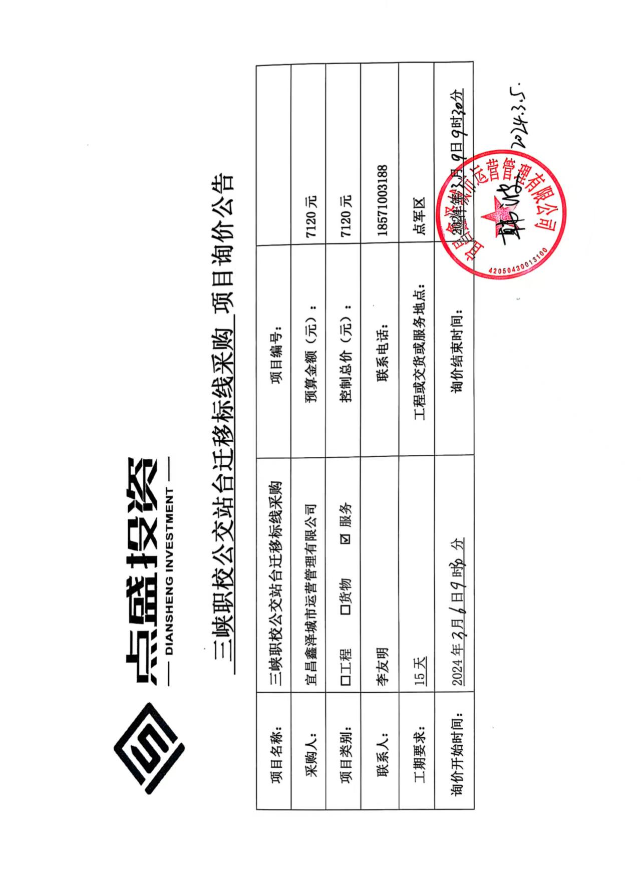 三峽職校公交站臺遷移標(biāo)線采購詢價公告