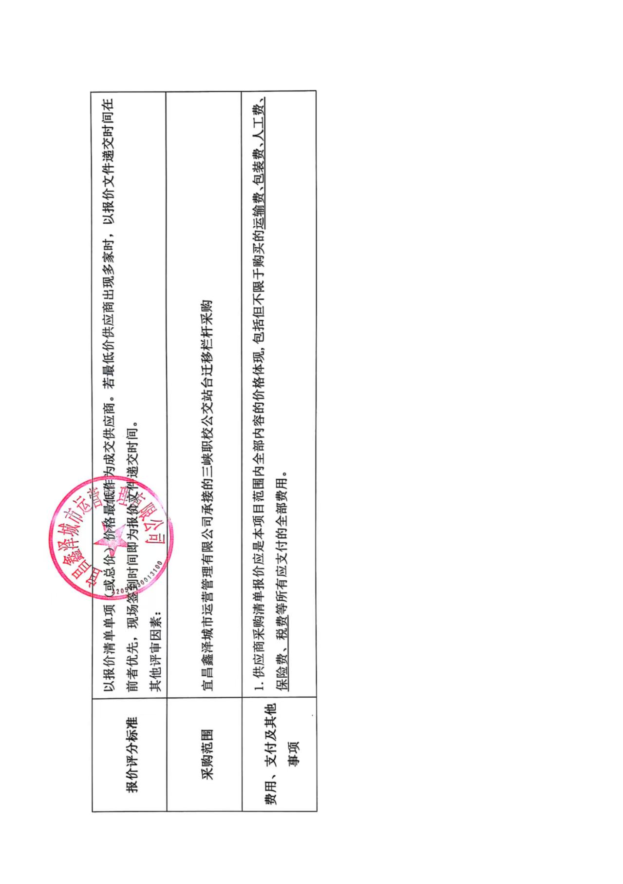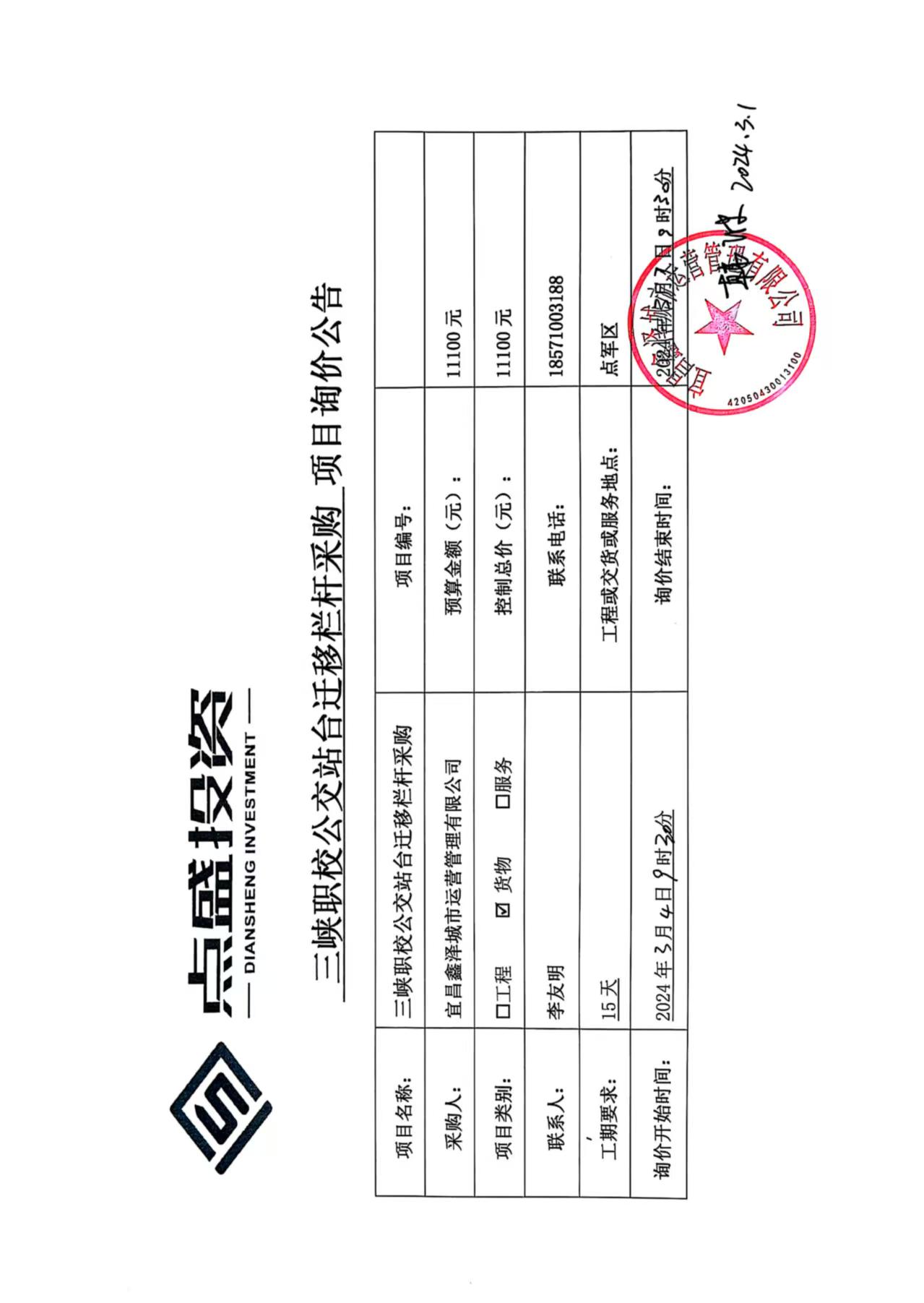 三峽職校公交站臺遷移欄桿采購詢價(jià)公告