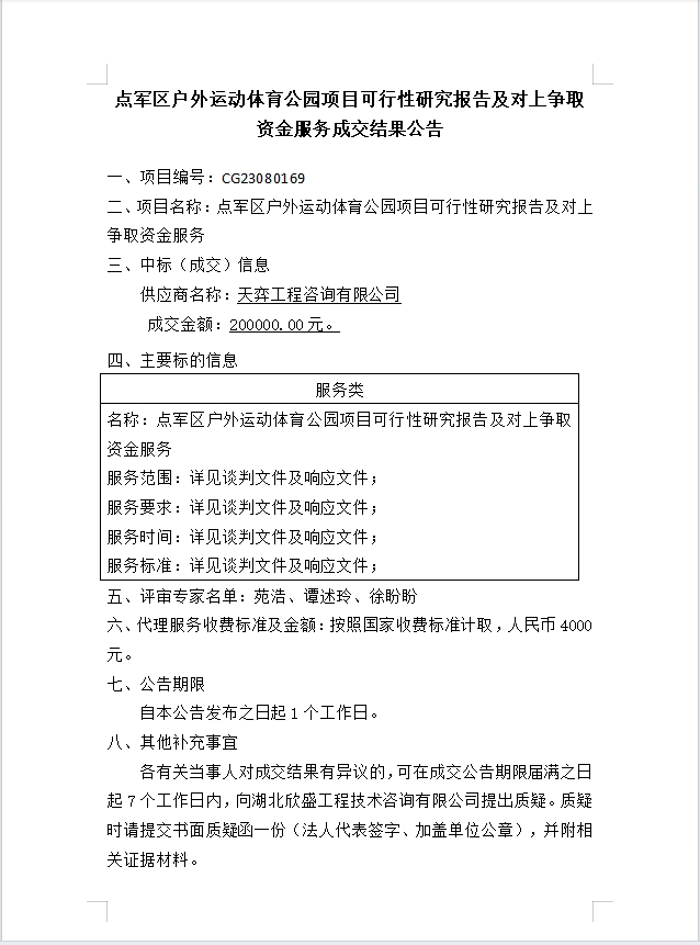 點(diǎn)軍區(qū)戶外運(yùn)動(dòng)體育公園項(xiàng)目可行性研究報(bào)告及對上爭取資金服務(wù)成交公告